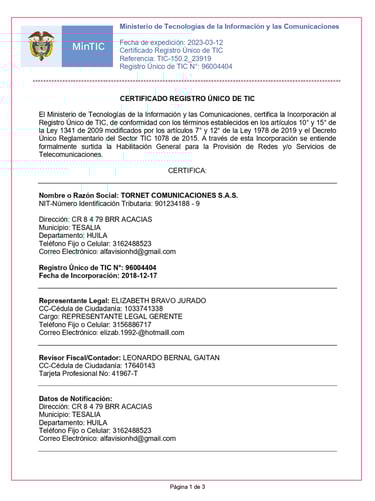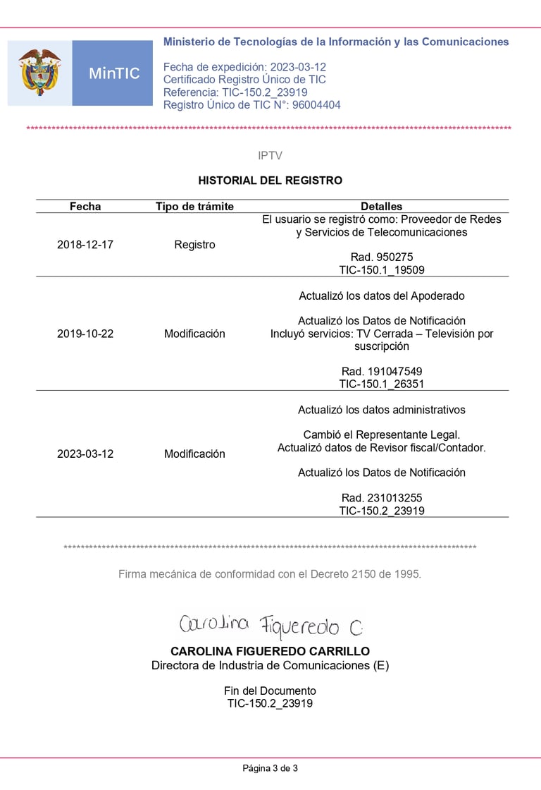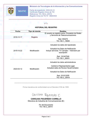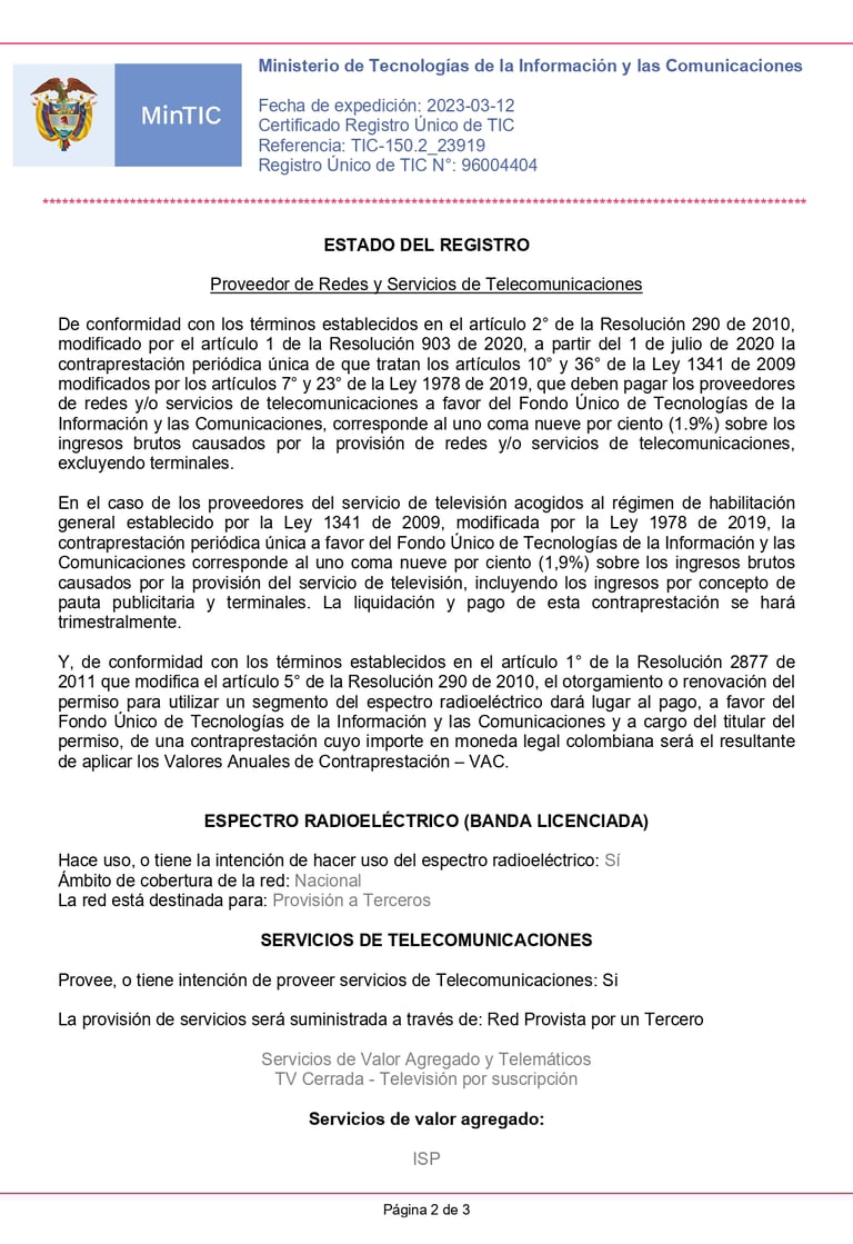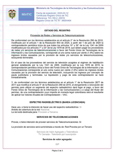 Una vez obtenido este registro, los proveedores de redes y/o servicios de telecomunicaciones y titulares de permisos para el uso de recursos escasos (ERE) pueden llevar a cabo el inicio de la provisión de redes y/o servicios de telecomunicaciones.