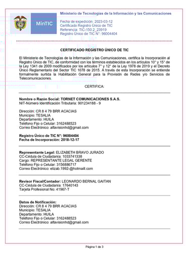 El Registro TIC es la forma a través de la cual los proveedores de redes y/o servicios de telecomunicaciones y los titulares de permiso para el uso de recursos escasos (espectro radioeléctrico, ERE), hacen efectiva la habilitación general prevista en el artículo 10 de la Ley 1341 de 2009.